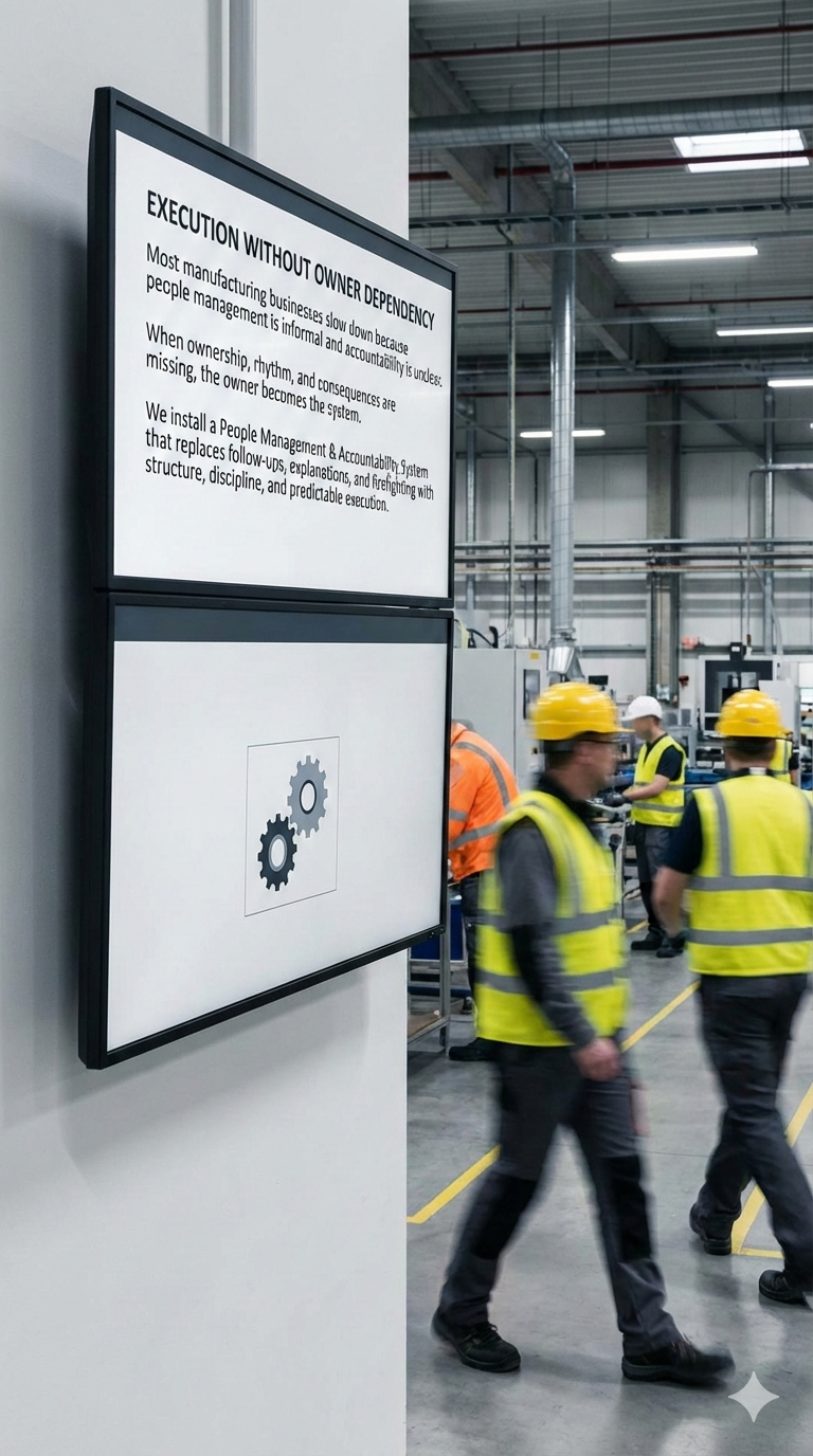 This system is designed for business owners who want predictable execution, disciplined teams, and accountability — without micromanagement, shouting, or damaging relationships. It works when ownership stays with the owner and systems do the heavy lifting.